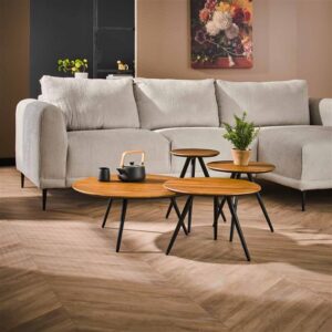 Hoyz Collection – Salontafel Teca Lichtbruin – Rond – Set van 4