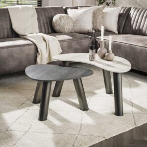 Hoyz Collection – Salontafel Twin Organisch Set Van 2 – 3D Keramiek Travertin Zwart-grijs