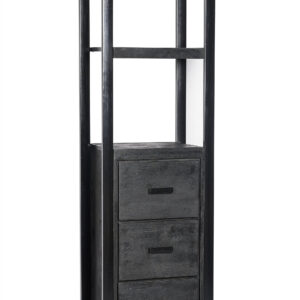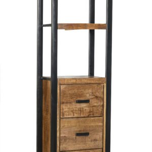 Livingfurn – Boekenkasten Norris 3 laden 55 cm – Mangohout / Gecoat Staal