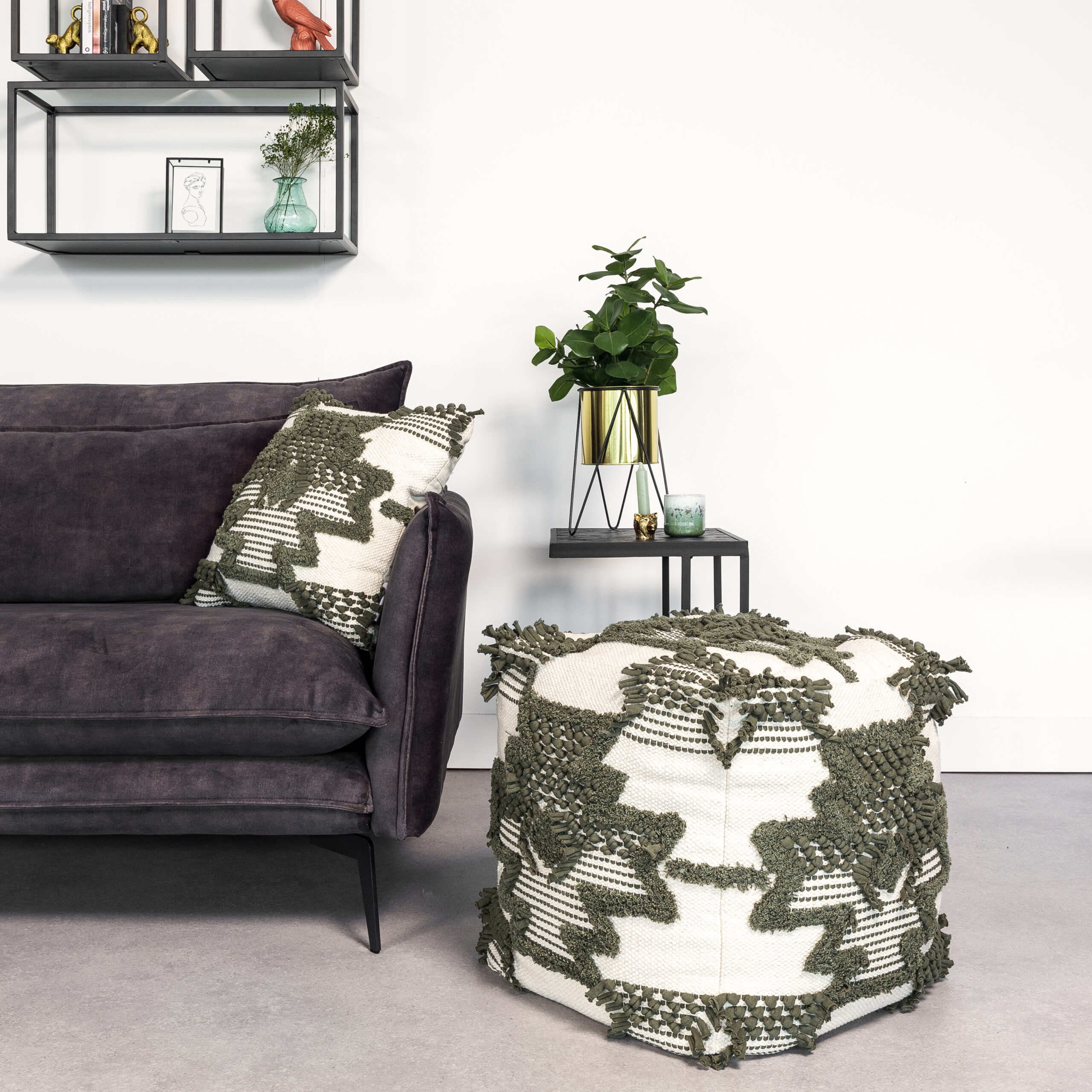 Hoyz Collection – Poef P611 Groen/grijs – 45x25x45