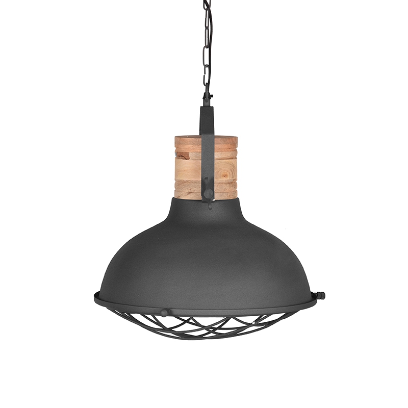 Hanglamp Grid van LABEL51, uitgevoerd in de kleur grijs, is een robuuste lamp met stoere accenten. De metalen korf en grove bouten zorgen voor een industrieel karakter.