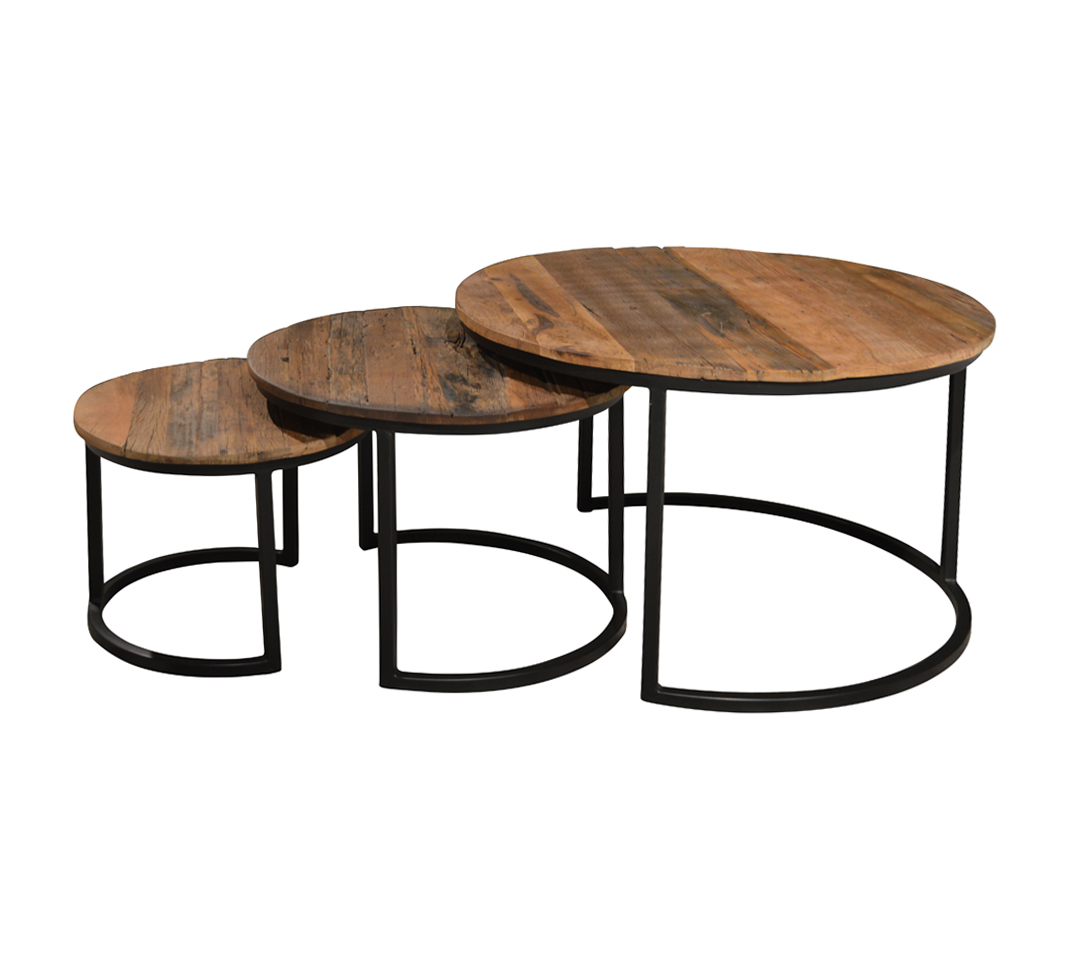 Livingfurn – Salontafel Dakota Jerrel Set of 3 – Riverwood / Gecoat Staal