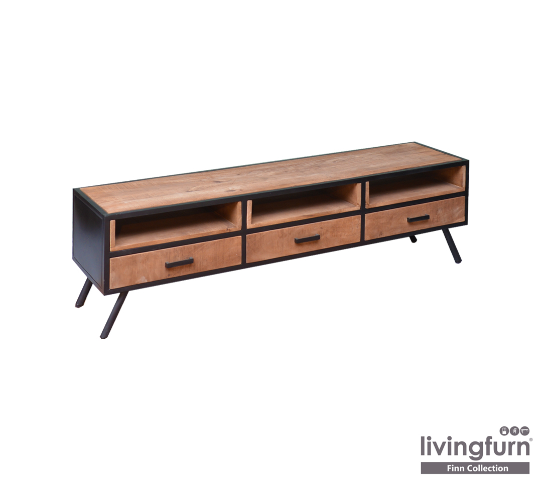 / Livingfurn – TV Meubel Finn 160 cm – Mangohout / Gecoat Staal