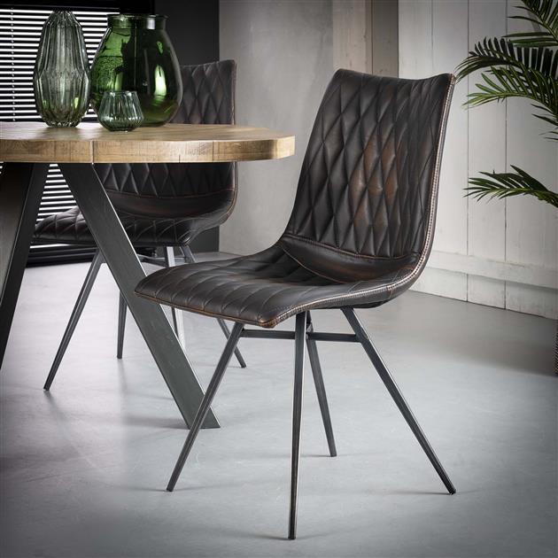 / Stoel vintage PU geruit kruispoot VPE 2
