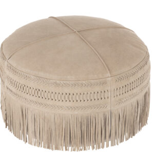 J-line – Poef Franjes Rond Leer Lichtgrijs – 54x54x37cm