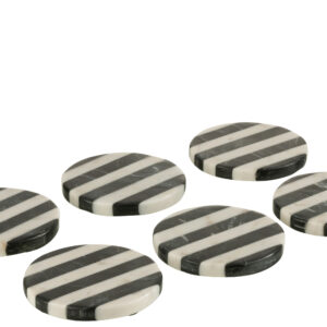 J-line – S/6 Onderzetters Streep Marmer Wit/zwart – 10x10x1.5cm