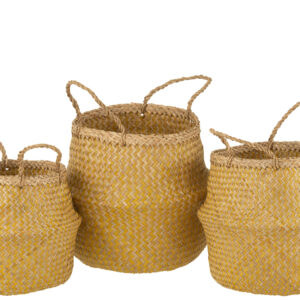 J-line – Set 3 Manden Intrekbaar Zeegras Geel – 30x30x28cm