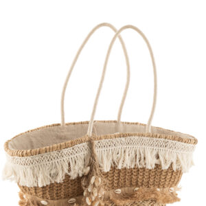 J-line – Strandtas Riet Kwastjes Jute Naturel/ecru – 48x30x45cm