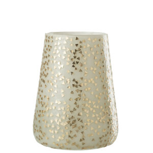 J-line – Windlicht Driehoek Glas Wit/goud Extra Large – 17x17x23cm