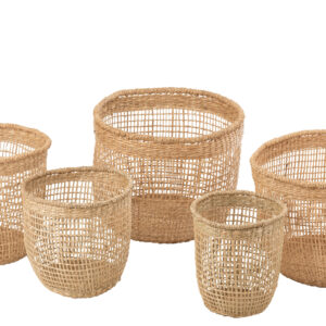 J-line – Set Van 5 Manden Oasis Zeegras Licht Naturel – 40x40x32cm