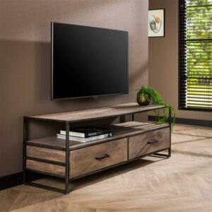 Hoyz – TV-meubel Turf / Massief acasia grijs antiek